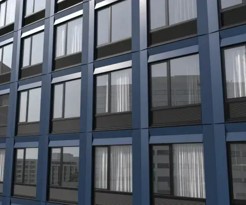 Through our unitized prefabricated wall systems and implementation of the latest in design and construction technology, Dextall delivers on the three core principles it was founded on. These include high-quality, resilient, and durable painted exterior aluminum-clad surfaces. Beyond surface aesthetics, the walls are highly insulated, feature high-performance windows, and exceed energy code requirements for thermal performance.